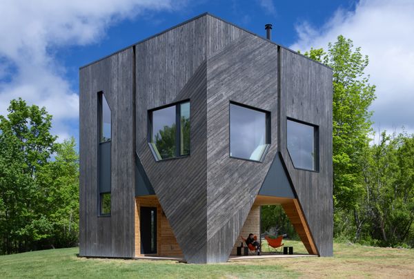 Architects Miroslava Brooks and Daniel Markiewicz of FORM envisioned a sculptural cube on a hill for their shared retreat in Hillsdale, New York—but added one feature that blurs the line between inside and out. It’s a ground-floor porch that feels both sheltered and open, with trapezoidal cutouts on three sides framing views toward the hillside.
