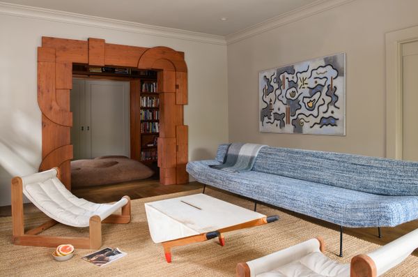 When they first approached Elena Dendiberia and Homan Raja, cofounders of the San Francisco-based design firm Studio AHEAD, the couple weren't seeking out a custom mantel-slash-portal. Rather, they were in search of a a runner that incorporated a number of antique rugs collected throughout years of traveling. But in the backyard, as the four spoke over ceramic plates of local tomatoes and the project grew.